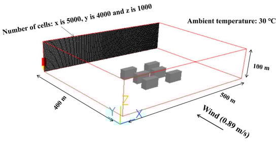 Computational domain, grid and boundary conditions of computational fluid dynamics (CFD) simulation in urban buildings.