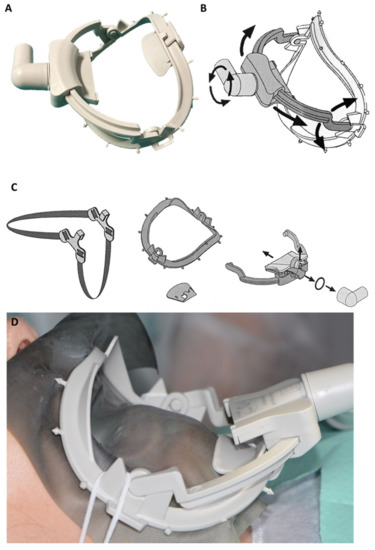Another new device is constituted by a double rubber-dam arch with a sliding suction pipe able to uptake spray produced in the mouth and by the nose. The authors contributed to the development of a preliminary 3D-printed version of the device reported in Figure 2A.
