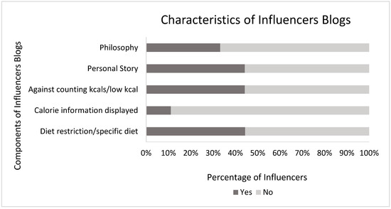 ‘About me’, ‘FAQ’ and ‘Disclaimer’ sections on blogs allowed the identification of professional affiliations, qualifications, age and sex of SMI. Blogs were analysed to determine if SMI advocated specific diets, food philosophies, personal stories or displayed nutritional information alongside recipes.