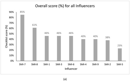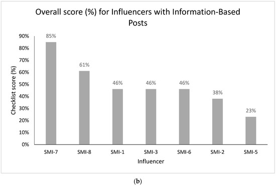 (a) Overall credibility score for all influencers (%) (n = 9). (b) Overall credibility score for influencers who provided information-based posts (%) (n = 7).