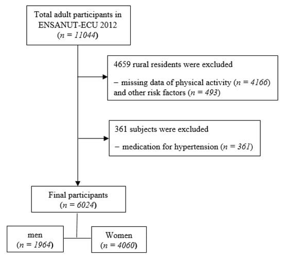 - Freire, W.B.; Ramírez-Luzuriaga, M.J.; Belmont, P.; Mendieta, M.J.; SilvaJaramillo, K.; Romero, N. Encuesta Nacional de Salud y Nutrición de la Población Ecuatoriana de cero a 59 años. ENSANUT-ECU 2012, 1st ed.; Ministerio de Salud Pública/Instituto Nacional de Estadísticas y Censos: Quito, Ecuador, 2014.