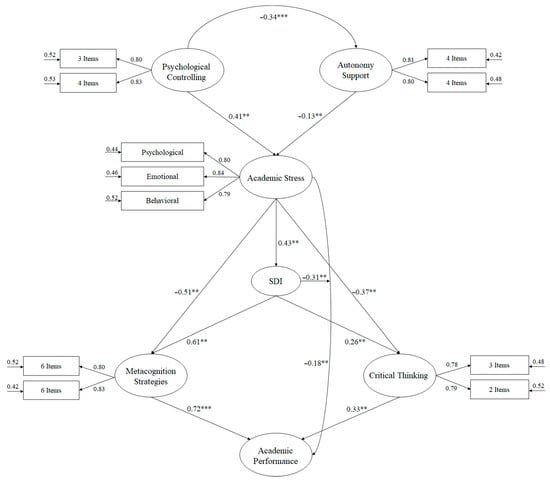 Structural equation model where the causal relationships between the variables of the study are established. Note: *** p < 0.001; ** p < 0.01. Self-Determination Index