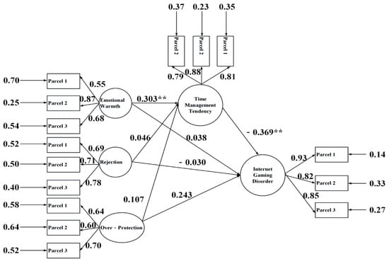 | 5. Mother’s emotional warmth → time management tendency → IGD | −0.041 | 0.012 | −0.069 | −0.021 | 0.010 * | full |