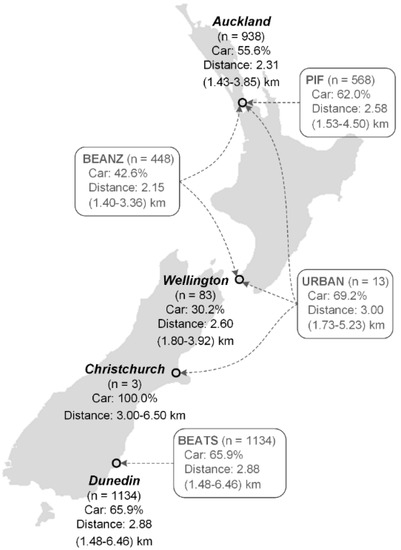 - Ministry of Transport. 25 Years of New Zealand Travel: New Zealand Household Travel 1989–2014; Ministry of Transport: Wellington, New Zealand, 2015. [Google Scholar]