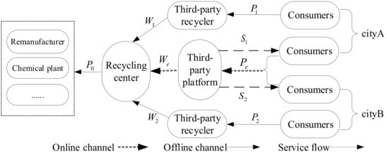 - Feng, L.; Govindan, K.; Li, C. Strategic planning: Design and coordination for dual-recycling channel reverse supply chain considering consumer behavior. Eur. J. Oper. Res. 2017, 260, 601–612. [Google Scholar] [CrossRef]