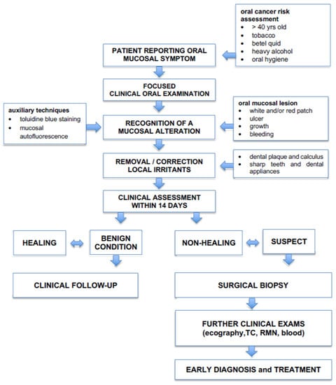 - Van Der Waal, I.; De Bree, R.; Brakenhoff, R.; Coebergh, J.-W. Early diagnosis in primary oral cancer: Is it possible? Med. Oral Patol. Oral Cir. Bucal 2011, 16, e300–e305. [Google Scholar] [CrossRef] [PubMed]