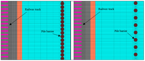 In all the numerical models made in this paper, the diameter of the piles was 0.6 m, which may be considered as the smallest dimension in practice. A smaller diameter could be problematic during the construction and filling processes. Only this diameter has been considered in this paper because the barrier width seems not to have a relevant influence on results [10]. Moreover, the length of the pile barrier has been considered as 4, 8, and 12 m.