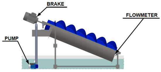The screw and the trough were made of steel and accurately manufactured. The gap between the flights and the trough was 3 mm. The maximum rotation speed was 73 rpm. The hypothesis presented in this work, Equation (1), was used to minimize leakage losses and obtain an efficient AST.