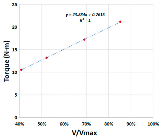 Force reactions obtained in node A provided the torque of the screw for the four levels of filling studied. Figure 6 shows these results including the linear trendline. The adjustment of the trendline based on R-squared values was very good and showed the expected linear trend. For the design flow, the maximum theoretical torque was obtained when buckets were full. This effect, which is clear in a bucket elevator, is not so obvious in the AST design. In a bucket elevator, the torque is the weight of the bucket times the radious of the belt pulley. However, the concept of buckets and of filling in ASTs has not been clearly explained in previous research.
