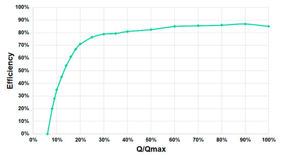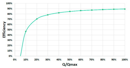 Figure 7 shows the efficiency curve of this specific prototype based on the relation between the real flow measured and the maximum flow.