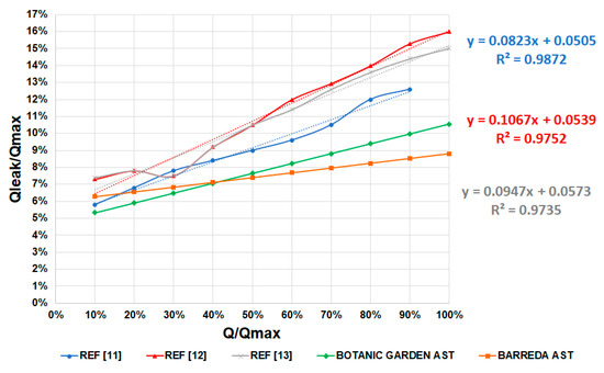The real leakage losses can be obtained in ASTs which have already been installed and thus the adjustment of the linear trendline proposed in this work can be determined.
