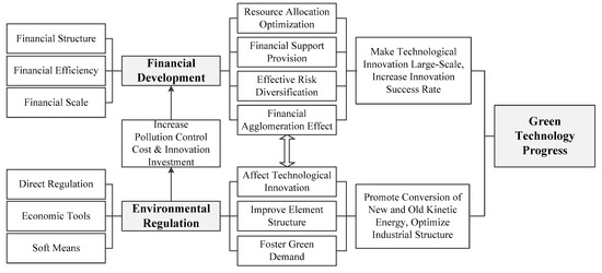 The influence mechanisms of environmental regulation and financial development on green technological progress can be seen in Figure 1.