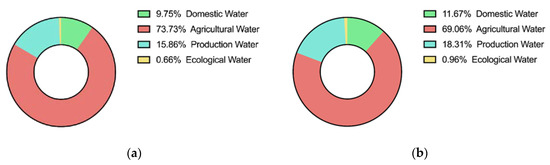 Water consumption proportion of each water department in Huaihe in (a) 2020, (b) 2050.