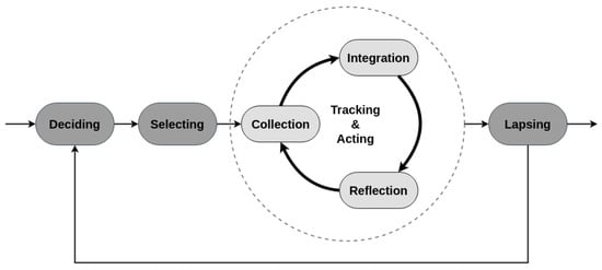 Adapted from Epstein et al.’s lived informatics model of personal informatics: this model is based on Li et al.’s model and highlights the essential fluidity and iteration of a self-quantification process. It is not specifically oriented towards behavior change, though.