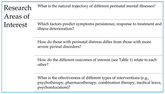 Other aspects that remain unclear in the clinical perinatal literature are the trajectories of different illnesses, the predictors of severe illness course, and whether treatment success is influenced by factors such as sociodemographic variables, comorbidities, medical and obstetrical complications and childhood adversity. Following patients longitudinally may facilitate answers to some of these questions.