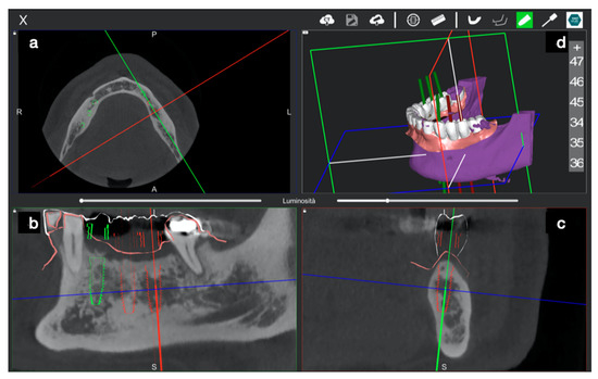 Dental implants have dramatically changed the outcome of oral health conditions of patients with missing teeth [1,2,3]. To make a complete study of the patient’s jaws, radiographic examinations are mandatory. The 2D digital X-rays give limited information, especially when the operator is investigating the jaws’ width or the proximity to neighboring relevant structure as nerves or roots [4].