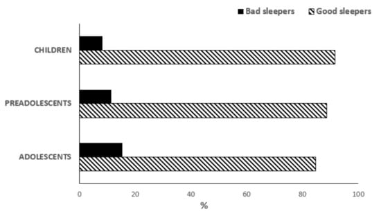 Prevalence of good and bad sleepers in children, preadolescents and adolescents.