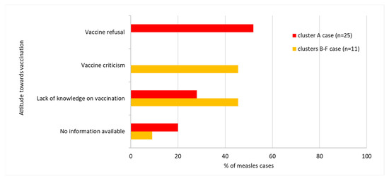 Measles cases according to attitude towards vaccinations and cluster, Austria, January–March 2019 (n = 36).