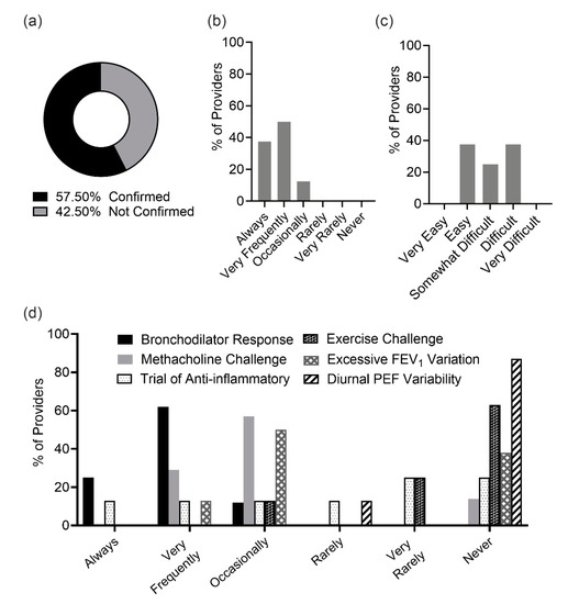 - Sokol, K.C.; Sharma, G.; Lin, Y.-L.; Goldblum, R.M. Choosing Wisely: Adherence by Physicians to Recommended Use of Spirometry in the Diagnosis and Management of Adult Asthma. Am. J. Med. 2015, 128, 502–508. [Google Scholar] [CrossRef] [PubMed]