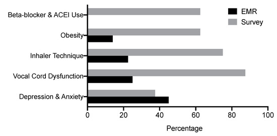 - Gherasim, A.; Dao, A.; Bernstein, J.A. Confounders of severe asthma: Diagnoses to consider when asthma symptoms persist despite optimal therapy. World Allergy Organ. J. 2018, 11, 29. [Google Scholar] [CrossRef]