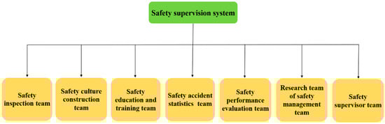 In this paper, the study on the organization structure of safety supervision is actually to divide the safety management tasks and responsibilities, and to ensure the work focus of the safety supervision. The XGC should establish a safety production committee and a safety supervision department that are fully responsible for the overall safety production supervision. The safety supervision department is the core component of the organizational structure and includes both technical and management personnel, with the proportion of management personnel exceeding that of technical personnel, given that management is the key focus of this department. In addition, there is an urgent need to increase the number of full-time personnel in the safety supervision department. These staff can be recruited from the XGC’s cadre of part-time supervisors or from the wider society according to the required proportion of personnel, and a comprehensive division of labor should be implemented, as shown in Figure 2.
