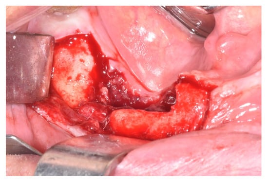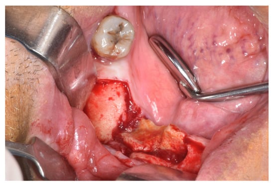 - Marcianò, A.; Rubino, E.; Peditto, M.; Mauceri, R.; Oteri, G. Oral Surgical Management of Bone and Soft Tissues in MRONJ Treatment: A Decisional Tree. Life 2020, 10, 99. [Google Scholar] [CrossRef]