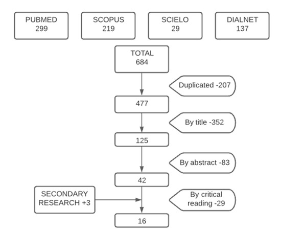 The selection process of the studies was carried out through the reading of the title and abstract of each article. After the elimination of duplicates and the application of the inclusion and exclusion criteria, the articles were read in full, with an evaluation of the quality of each article with critical reading guidelines. Finally, the references of the selected articles were reviewed in order to apply the reverse search method.