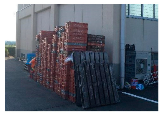First, residents may wish to return home from the shelter in a situation where there is still a risk of disaster, and the evacuees may return home without contact. Second, although it was decided to close the shelter, some residents may not return home due to convenience and anxiety, and it may be difficult to deal with. Thirdly, when closing at night, special measures may be required, such as the fact that the damage situation cannot be confirmed and the closure cannot be performed, and that staff members wait overnight for evacuees who do not return home. Fourth, there are issues such as processing after using and storage of stockpiles and a shortage of personnel for tidying up work. Although the pallets were provided to Nishihara Village during the 2016 Kumamoto Earthquake, the pallets were not collected after that and uncollected pallets were piled up (Figure 17), forcing local government officials to process them.