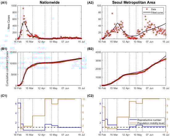 Mathematical modeling is beneficial for analyzing the transmission dynamics of infectious diseases []. With the reported data, the transmission rate, which is hardly measurable, can be estimated. Using the estimated transmission rate, the reproductive number can be calculated. This study aimed to analyze the COVID-19 epidemic in Korea using mathematical modeling. In this study, we addressed the changes in population mobility data and trends of the reproductive number were compared and analyzed according to the changes in the government’s NPI strategy.