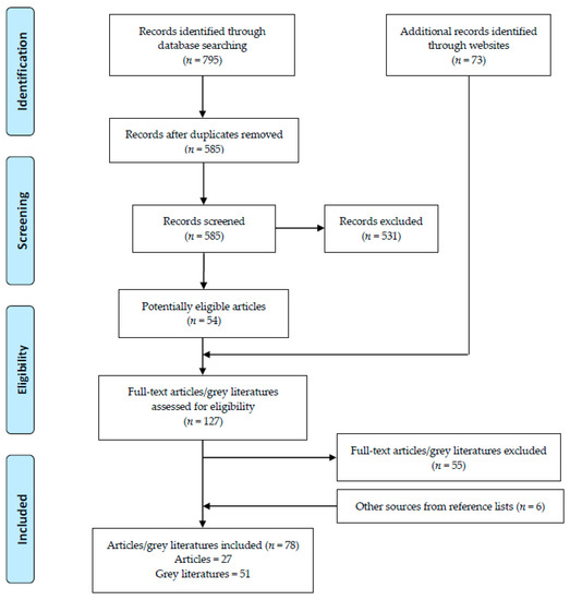 - Moher, D.; Liberati, A.; Tetzlaff, J.; Altman, D.G.; Group, P. Preferred reporting items for systematic reviews and meta-analyses: The PRISMA statement. Ann. Intern. Med. 2009, 151, 264–269. [Google Scholar] [CrossRef] [PubMed]
