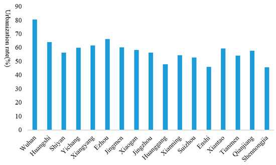 Urbanization rates of cities in Hubei Province.