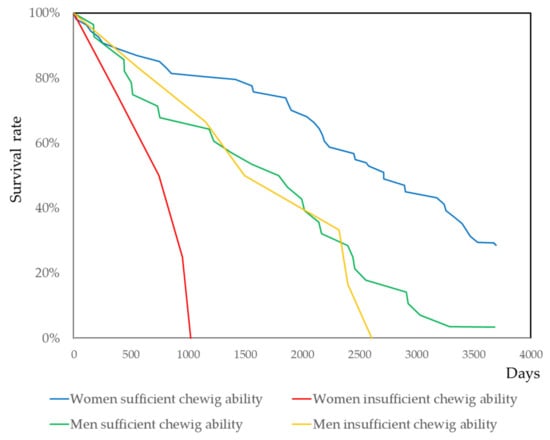 3.2. Effect of Self-Assessed Chewing Ability for Mortality
