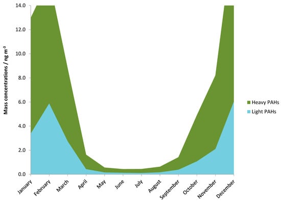 - Ravindra, K.; Bencs, L.; Wauters, E.; de Hoog, J.; Deutsch, F.; Roekens, E.; Bleux, N.; Berghmans, P.; Van Grieken, R. Seasonal and site-specific variation in vapour and aerosol phase PAHs over Flanders (Belgium) and their relation with anthropogenic activities. Atmos. Environ. 2006, 40, 771–785. [Google Scholar] [CrossRef]