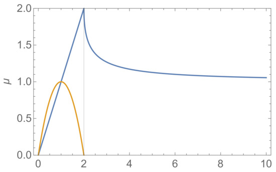 In the following, it is convenient to introduce a dimensionless time variable , which allows us to formulate the differential equations as functions of the mean infectious time (which becomes the new time unit) rather than days. Accordingly, Equation (5) can be written as