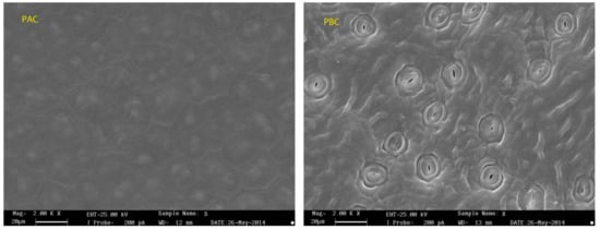 SEM micrographs of adaxial (PAC) and abaxial (PBC) cuticle of Photinia serrulata Leaf.