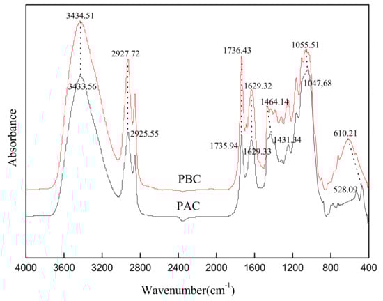 FTIR spectra of adaxial (PAC) and abaxial (PBC) cuticle of Photinia serrulata Leaf.