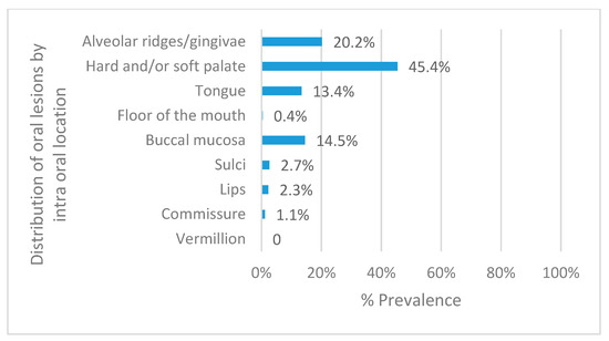 Total prevalence of oral mucosal lesions by intra-oral location.
