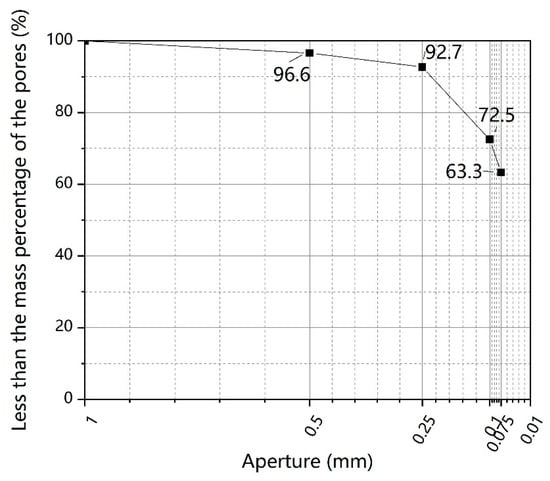 Undisturbed soils used in this work were taken from an industrial site in Chongqing, China, being reddish-brown in color. The collected soil samples were air-dried in the laboratory for about two weeks, and afterward, they were sieved through a 16-mesh polyethylene screen (<1 mm) to remove stones, branches, coarse materials, and other debris. Subsequently, the sieved soil samples were subjected to conventional soil tests in accordance with the Standards for Geotechnical Test Methods (GB/T 50123-1999). The physical property parameters of the soil samples are shown in Table 1. The soils passed through a 1 mm sieve were subjected to sieving treatment with an electric sifter to obtain a particle gradation curve (as shown in Figure 1. According to the Engineering Classification Standard for Soil (GB/T 50145-2007), the soils were classified as fine-grained soil containing coarse grain, and with a liquid-low limit. The main chemical component of the tested soils is , determined by the X-ray fluorescence (XRF) technique (as shown in Table 2).