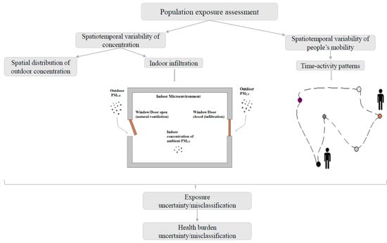 - Baxter, L.K.; Burke, J.; Lunden, M.; Turpin, B.J.; Rich, D.Q.; Thevenet-Morrison, K.; Hodas, N.; Ozkaynak, H. Influence of human activity patterns, particle composition, and residential air exchange rates on modeled distributions of PM2.5 exposure compared with central-site monitoring data. J. Expo. Sci. Environ. Epidemiol. 2013, 23, 241–247. [Google Scholar] [CrossRef] [PubMed]