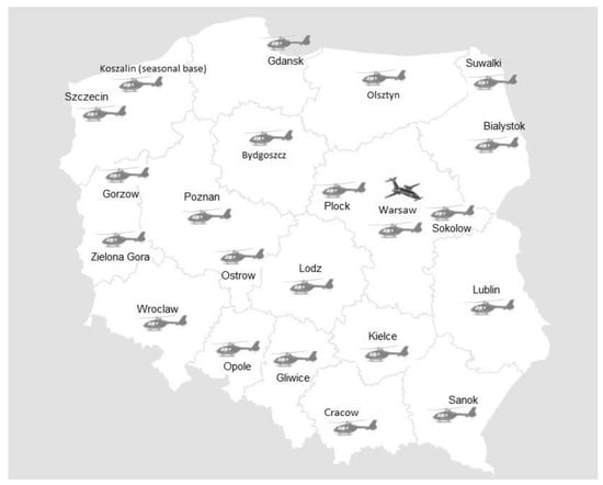 - Gałazkowski, R. New possibilities in emergency medical transportation and emergency services of Polish Medical Air Rescue. Anestezjol. Intens. Ter. 2010, 42, 174–178. [Google Scholar] [PubMed]