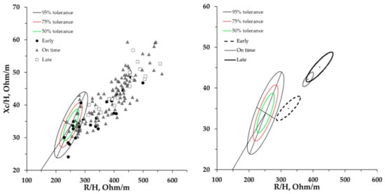 Figure 3 shows the single and mean impedance vectors of the athletes sorted based on maturity status in relation to the classic BIVA references for elite male soccer players [].