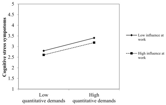 Influence at work buffers the positive relationship between quantitative demands and cognitive stress symptoms.