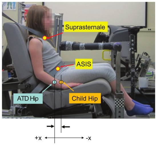 - Reed, M.P.; Ebert-Hamilton, S.M.; Manary, M.A.; Klinich, K.D.; Schneider, L.W. A new database of child anthropometry and seated posture for automotive safety applications. Technical Paper 2005-01-1837. SAE Trans. J. Passeng. Cars Mech. Syst. 2005, 114, 2222–2235. [Google Scholar]