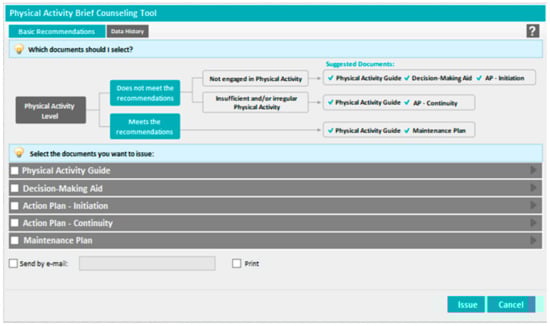 Physical activity brief counseling tool in the software platform “PEM—Prescrição Eletrónica Médica”.