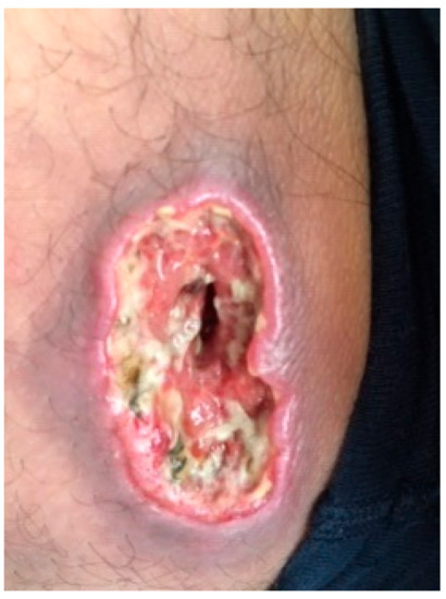For most patients, the disease begins with a single skin nodular lesion (Figure 1), often ulcerated, with a diameter of more than 2 cm, while for 20% of patients, the onset is multiple localizations on different skin areas (Figure 2). The clinical features of skin lesions are nodules, papules, plaques, and cellulitis-like ulcerations. Their color ranges from red to violaceous and may rapidly grow and have predilection for the head, neck, and extremities. Generally, the disease is asymptomatic and fevers, night sweats, or weight loss are usually lacking. Spontaneous regressions have been reported for 10%–42% of lesions. PcALCL may be the result of mycosis fungoides (MF) progression [20]. Therefore, in patients with pcALCL, a current or previous diagnosis of MF should be excluded. The differential diagnosis between pcALCL and CD30+ MF transformed can be even more difficult when there is a clinical presentation with a previous or simultaneous patch–plaque MF stage. The presence of multiple lesions in 20% of the cases can make the differential diagnosis difficult with the type C Lymphomatoid papulosis (LyP), which presents borderline lesions [20,21]. The onset with multiple sites and major extension appears to have a worse prognosis due to a higher incidence of cases with evolution to secondary cutaneous ALCL (scALCL). The International Society of the Cutaneous Lymphomas European Organization for Research and Treatment of Cancer proposed the tumor, node, metastases (TNM) classification of cutaneous lymphoma other than mycosis fungoides and Sezary syndrome (Table 1) [20]. This classification is based on the size of the lesions, the skin areas involved, the lymph node stations involved, and the extranodal and visceral localizations. It is clearly usable for the staging of both pcALCL and scALCL. Staging is essential to distinguish the pcALCL from scALCL (Table 1). All patients at diagnosis should perform a complete metabolic panel, lactate dehydrogenase (LDH), and Tc-PET, since these exams allow for the exclusion of a systemic infiltration from ALCL.