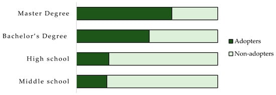 Percentage of PFT adopters and non-adopters per education level.