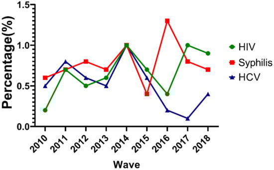 3.2. Prevalence and Trends of HIV, Syphilis, and HCV