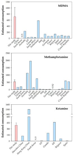 - Du, P.; Li, K.; Li, J.; Xu, Z.; Fu, X.; Yang, J.; Zhang, H.; Li, X. Methamphetamine and ketamine use in major Chinese cities, a nationwide reconnaissance through sewage-based epidemiology. Water Res. 2015, 84, 76–84. [Google Scholar] [CrossRef]