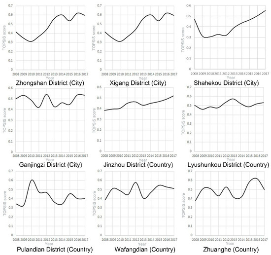 3.1. TOPSIS Scores of Urban and Rural Medical Care in Dalian