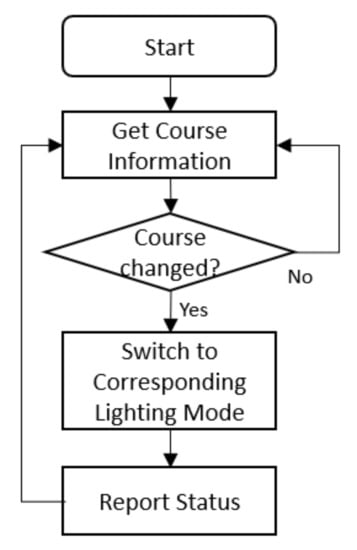 The control flow automatically reads class schedule and switches learning context accordingly, while the teacher can manually select learning context. Once learning context is changed, the system will load the corresponding lighting configuration from the lighting mode database, which initially contains the 10 proposed modes as introduced in Section 4.1. In this case, a user is allowed to customize lighting modes or apply ad-hoc settings on site. Any change of lighting system, whether automatic or manual, will be recorded for algorithm training.